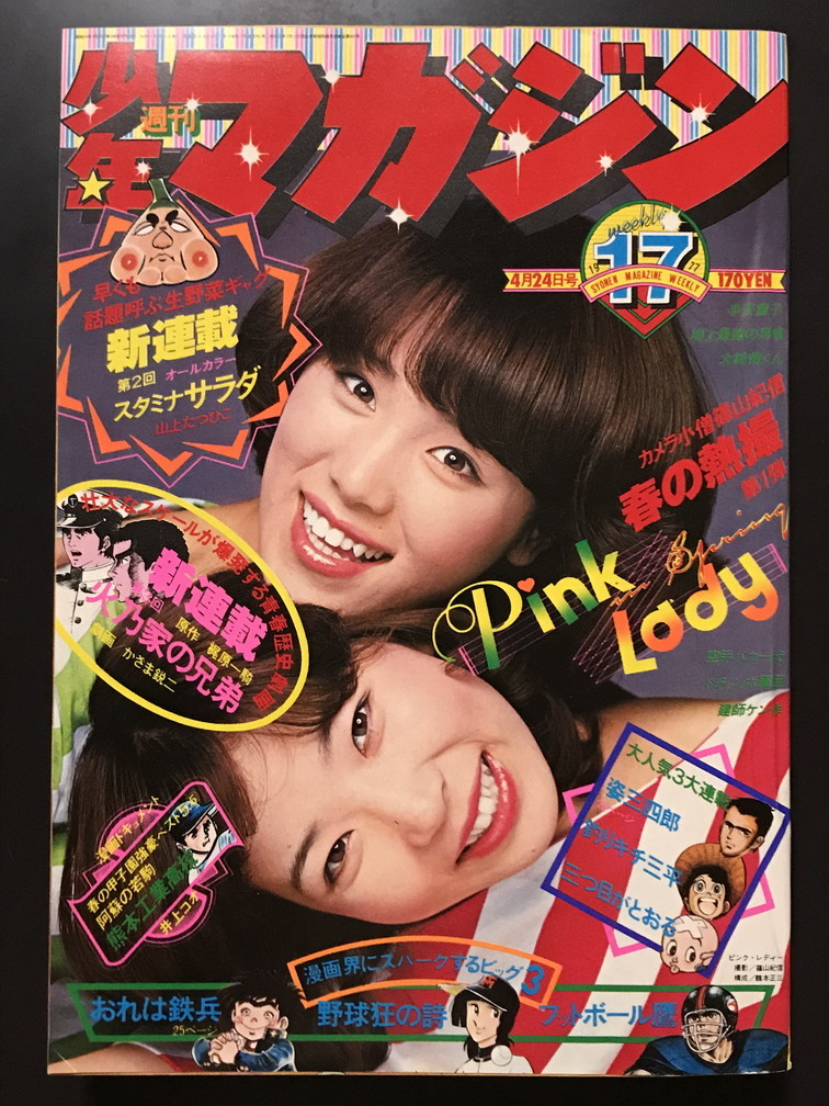 そういえば「ピンクレディ」と同時代の漫画といえば水島新司「野球狂の詩(1972年~1977年)」、矢口高雄「釣りキチ三平(1973年~1983年)」、手塚治虫「三つ目が通る(1974年~1978年)」、特に「野球狂の詩」は完全「サウスポー」の元ネタ。そういえば当時の謎の一つに「実態不明なアメフトブーム」も。 pic.twitter.com/ydpcHSrMup